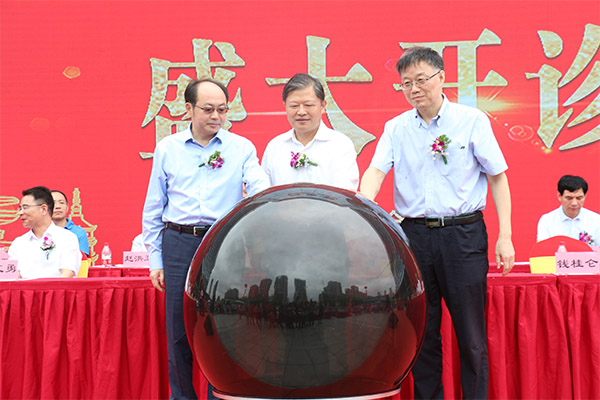 开诊典礼现场,在热烈的气氛中,李明宣布安医大四附院新院区正式开诊,并同钱桂仑、李俊一起点亮标志医院正式开诊的启动球。
