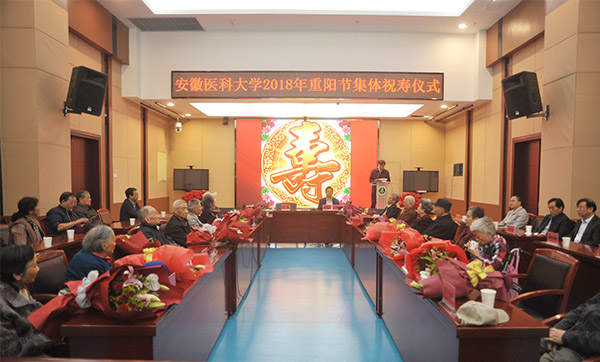 岁岁重阳,今又重阳。10月17日上午,学校为年满80周岁老同志举办2018年重阳节集体祝寿活动。校党委书记李俊出席并讲话,校党委副书记刘群英主持活动。