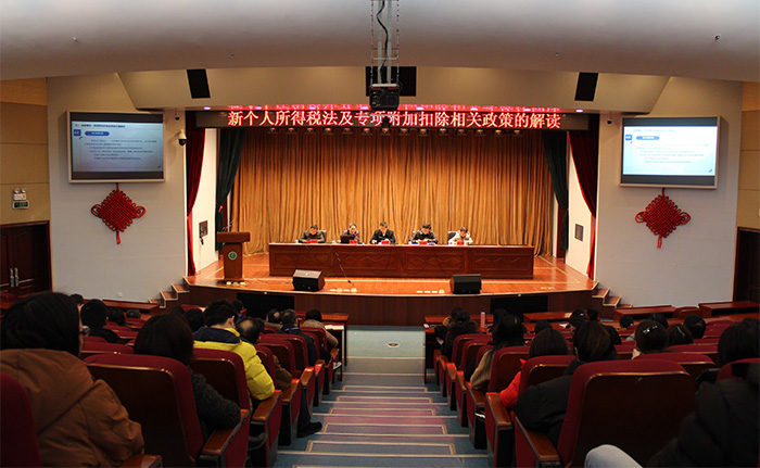 1月15日下午,学校邀请国家税务总局合肥市蜀山区税务局党委副书记、副局长金更群等专家,到我校开展新个人所得税及专项附加扣除相关政策的解读。副校长肖圣龙出席会议。