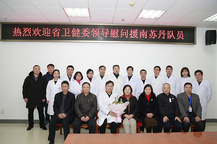 2月19日下午,农历元宵佳节,省卫健委主任陶仪声带领委办公室、援外办负责人一行来到我校第二附属医院,亲切看望并慰问安徽省七批援外(南苏丹)的15名医疗队员。校长曹云霞出席慰问会。