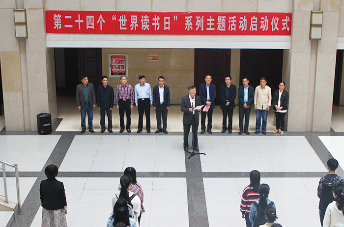 4月23日上午,第二十四个“世界读书日”系列活动启动仪式在校图书馆举行。校党委书记李俊出席仪式并讲话,副校长余永强主持启动仪式。