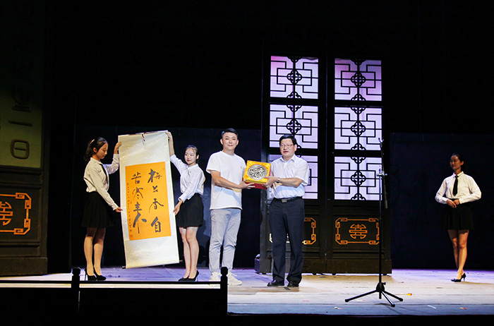 演出开始前,顾家山在致辞中向远道而来的艺术家们表示了热烈的欢迎和诚挚的感谢,并与山西省话剧院互赠了文化产品。