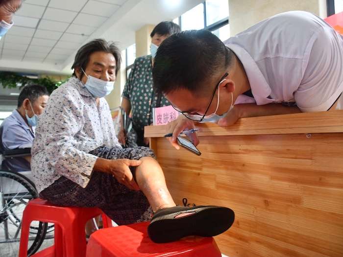 在铜陵市枞阳县老洲镇普济圩医院,公共卫生学院“守‘胃’健康——防慢病促健康”暑期社会实践团开展上消化道癌变人群筛查工作,同时对患者的尿样和血样进行采集与离心分装,对高危人群进行重点干预,帮助他们调整不合理的饮食结构,促进自身健康。