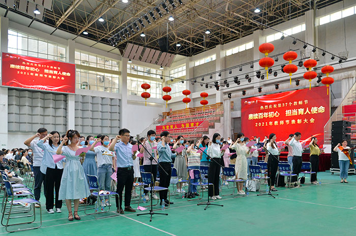 曹云霞在致辞中向默默耕耘、无私奉献的全体教职工致以节日的问候,向受到表彰的广大优秀教师和教育工作者表示热烈的祝贺,向工作满35周年和今年退休的老教师致以崇高的敬意,向全体新入职的青年教师表示了诚挚欢迎。