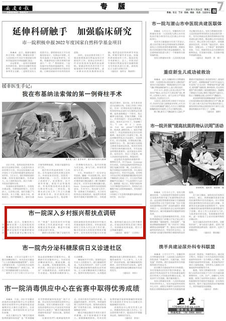 调研小组详细了解了吴俊村巩固拓展脱贫攻坚成果同乡村振兴有效衔接有关情况,并听取医院驻村工作队入村以来工作汇报。鲍习化还深入医院结对帮扶对象家中,宣传党的乡村振兴方针政策,鼓励他们通过自己的辛勤劳动,在基层组织和有关部门帮扶下,巩固拓展脱贫攻坚成果,把日子过得越来越好。