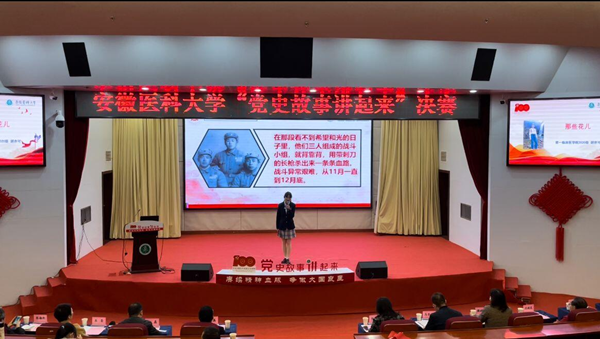比赛中,同学们慷慨激昂、感情真挚,紧紧围绕党史,以丰富鲜活的史实、生动鲜活的语言、激扬振奋的语调,用小切口呈现大主题、以小故事讲清大道理,声情并茂地讲述了《三面旗帜》《半条被子寄初心》《夏明翰的三封家书》《胡兰精神照后人》等党史故事,让师生重温了中国共产党波澜壮阔的百年奋斗历程,深刻感受到李大钊、赵一曼、左权、白求恩、吴孟超等革命先烈、英雄模范人物、杰出党员代表为国家、为人民、为事业而奋斗终身的坚定信念和奉献精神,表达了为实现中华民族伟大复兴贡献青春力量的决心。