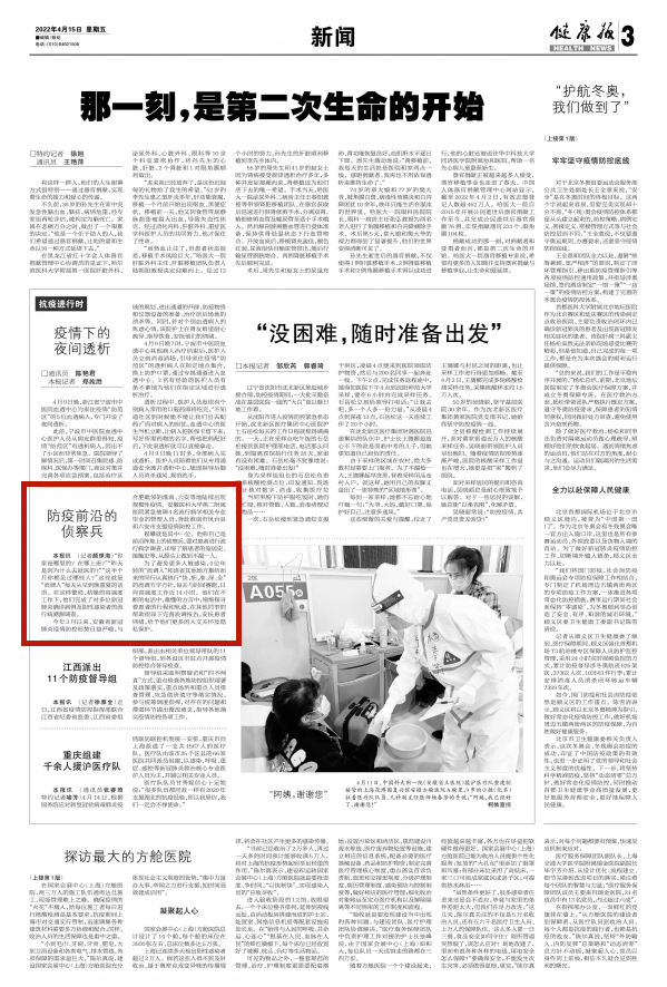 程攀就是其中一位。他称自己是前沿阵地上的侦察兵,要对患者进行流行病学调查,详细了解患者的旅居史、接触史等,从源头上做到不漏一人。