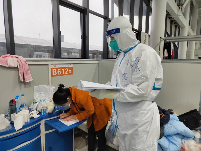 医疗组组长孙莉说:“在方舱里,‘人民至上、生命至上’绝不是一句口号,患者的安危就是我们的第一责任。”在医疗组的共同努力下,医疗工作有条不紊,医疗流程持续优化。医疗组里有很多参加过援鄂工作的医生,他们经验丰富、战斗力强,发挥了中流砥柱的作用;医疗组里的心理医生每次入舱医疗巡视,都会关注患者的情绪状态,运用所学专业,想患者所想、急患者所急、帮患者所需、解患者所难;由于经常接到应急任务,出舱患者和核酸采集名单大多在后半夜才能确定,医务组组长李鹏通过设定夜间每两个小时一次闹钟,定时查看手机信息的方式,确保第一时间将任务布置、落实到位。