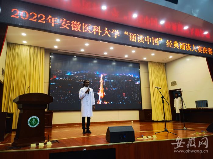 决赛现场,选手们准备充分,配合着精心制作的幻灯片,声情并茂地吟诵了意境优美的唐宋诗词、内涵丰富的经典名篇,有的表达对祖国壮丽河山的赞美,有的表达对近年来国家取得举世瞩目伟大成就的感叹,有的向无私无畏参与抗疫的医护人员致敬,还有的抒发浓烈的家国情怀和奋斗决心。朗诵或婉约、或豪迈,或深情款款、或慷概激昂,极富感染力和表演力,充分展示出选手们对节奏、语调等的精准把握,展现了安医学子良好的文化素养和精神风貌。