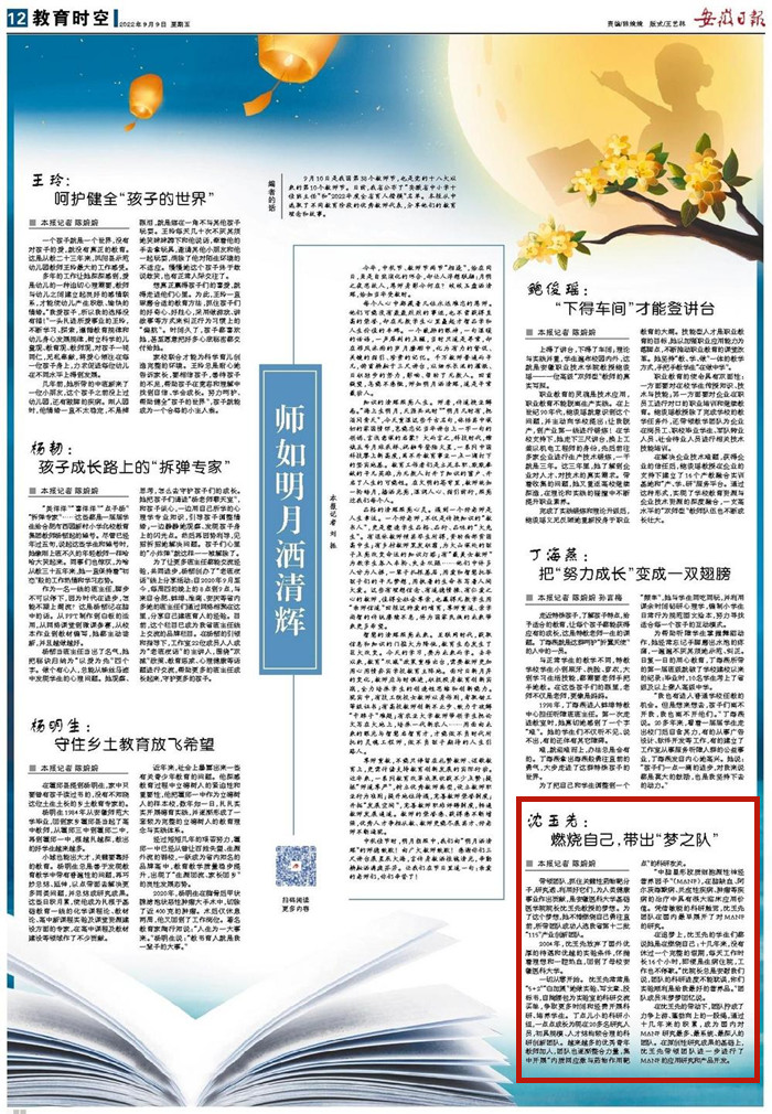 安徽日报:沈玉先:燃烧自己,带出“梦之队”