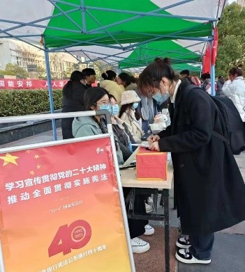 学校积极创新形式和手段,以“3·15”消费者权益保护日、全民国家安全教育日、世界知识产权日、民法典宣传月、国家网络安全宣传周、宪法宣传周等重要时间节点为契机,充分发挥融媒体作用,将普法工作融入校园文化活动中。通过普法宣讲、专题讲座、“学宪法讲宪法”演讲比赛、知识竞赛、宪法宣誓、主题签名等多种方式寓教于乐,以法律知识展览、主题文章推送、短视频等线上线下结合的形式,多渠道全方位开展宪法以及法治知识的宣传教育,增强广大师生对法律的内心拥护和真诚信仰。同时,将法治教育有机融入“我的中国梦”人人演讲、“东南学堂”大学生骨干培训、新生入学教育、主题班会团日等,以持续提高广大学子的法治意识和法治素养,让社会主义法治文化深入人心,为推进法治校园建设提供坚实基础。
