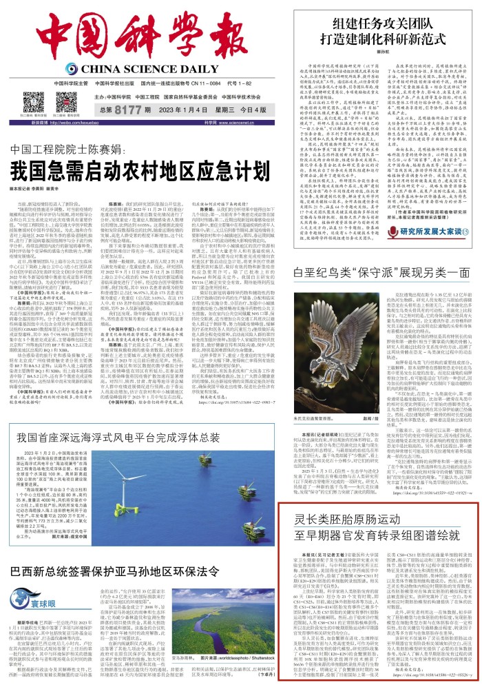 《中国科学报》 (2023-01-04 第1版 要闻)