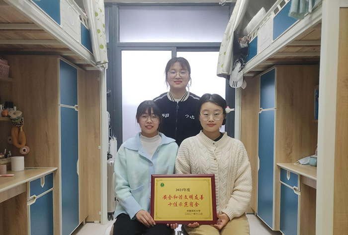 室友间的和谐友爱,也让这个小集体共同进步,刘莫楠所在宿舍还获得了学校2021年度“安全和谐文明友善十佳示范宿舍”“很高兴遇见这一群伙伴,大家一起吃饭、学习、复习、休息,共同经营着简单温馨的小窝。”刘莫楠说道。