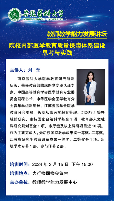教师教学能力发展讲坛:院校内部医学教育质量保障体系建设思考与实践