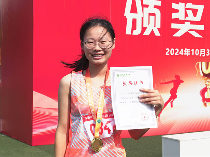 “感谢队友们的鼓励与陪伴让我不断突破自我、坚持向前。也感谢每一位为我加油的观众,用呐喊声给予我力量。我会继续拼搏,争取在未来的赛道上创造更多好成绩!”学生组女子1500米冠军、第一临床医学院罗情同学在赛后开心地说道。