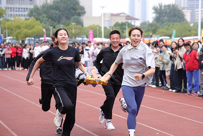 常规竞赛项目有序进行,从短跑、长跑到跨栏、接力,再到跳高、跳远、铅球,各个田径项目亮点纷呈、高潮迭起,9人次打破7项校纪录。趣味运动项目形式多样、内容丰富,展现了广大教职工的活力与风采。特别是新增的“四人急救搬运”比赛,既体现医学院校特色,又进一步传递了掌握急救知识的重要性。