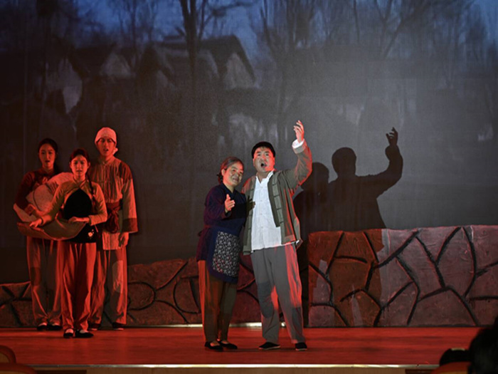 歌剧《向前》以点带面地描绘了淮海战役期间男女老幼齐上阵、家家户户支前忙的生动画卷,还原了其壮观场面。该剧深入挖掘了皖北民歌和地方戏曲等“非遗”元素,在唱腔和合唱编配中融入了淮北花鼓戏、泗州戏、淮北梆子戏等戏曲的艺术特色,以更加新颖、现代的艺术形式展现了中华优秀传统文化。演出生动精彩,赢得现场师生的热烈掌声。