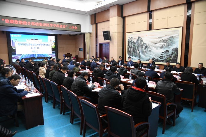 党委宣传部、医院管理处、科技处、网络与信息化管理处、发展规划处、公共卫生学院、卫生管理学院、健康大数据与群体医学研究所和各附属医院主要负责人参加会议并交流研讨。(发展规划处)