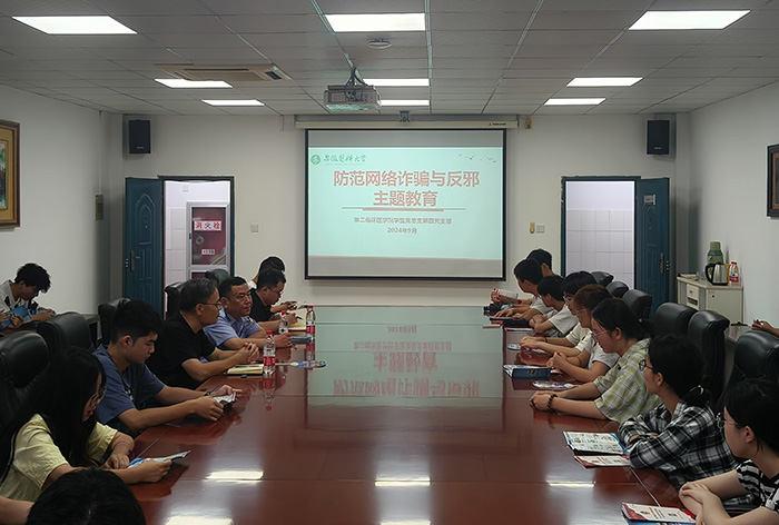 “在日常生活中要时刻保持警惕,对于陌生链接和电话,必须保持高度警觉,坚决不轻易点击或盲目轻信。若存在疑问,可直接拨打96110进行咨询或报警,从而避免遭受不必要的经济损失。”南校区管委会、第二临床医学院联合举办的预防网络电信诈骗培训讲座上,莲花派出所的民警正向学生提出防范建议。该讲座也是南校区“反诈识诈”系列宣传教育活动的重要内容之一。