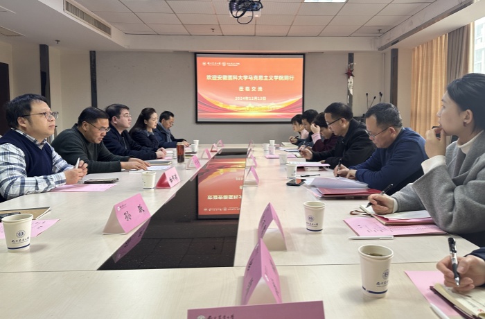 交流中,柳泽民分别向两所兄弟学院介绍了安医大马克思主义学院在教学管理、学科建设、科研申报、人才培养、人才队伍建设等方面的工作情况,分享了研究生培养、青年教师成长、科研创新团队建设、“党建+科研+教学”一体孵化机制、“大思政课”建设、医学人文课程建设等方面的具体举措和经验。他希望能够在良好合作的基础上,与兄弟学院建立长效合作机制,促进资源共享互补,实现互利共赢。