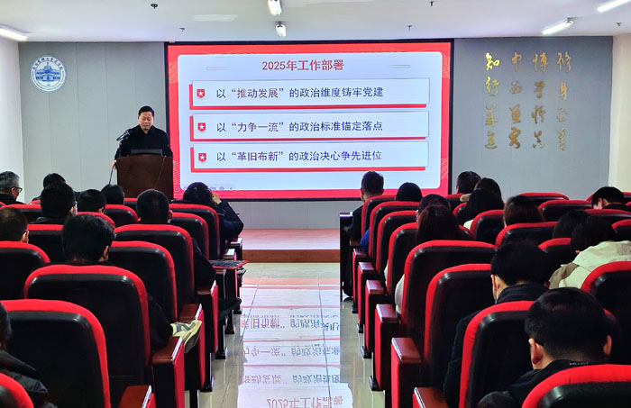 骆广东表示,2025年是“十四五”规划贯彻落实的收官之年,也是谋划“十五五”,落实学校第九次党代会精神、迁入新医科中心、即将迎接建校百年的关键一年。全院上下要以“推动发展”的政治维度铸牢党建,以党建项目提档为内核,实施党支部标准化规范化建设提升行动,推进“一支部一品牌”建设,力争党建项目全面提档进位。要以“力争一流”的政治标准锚定落点,积极筹备药学创新班,推进本科生国际教育计划;以学科发展提速为中心,力争在国家级人才项目上实现突破,实现药学学科争先进位。要以“革旧布新”的政治决心争先进位,以学校机构改革和药学学科资源整合为契机,对接一流高校的药学院发展路径,以更大的信心和决心,为建设国内一流高水平药学院而不懈奋斗。