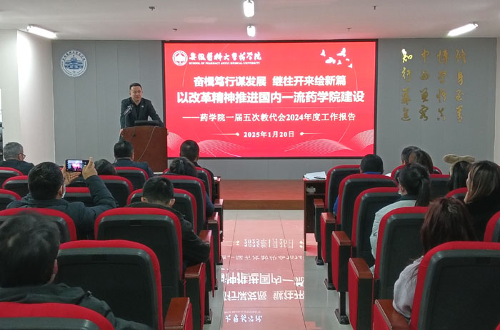 1月20日下午,药学院召开一届五次教职工代表大会暨学院寒假工作会议,总结学院2024年工作成效、谋划2025年发展要点。学院党委书记骆广东出席,执行院长孟晓明作院长工作报告。