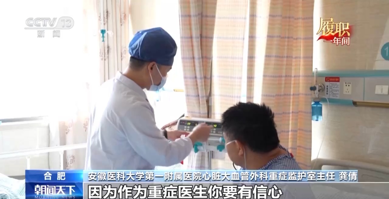 翁建平在重症监护病房走访调研时,71岁的患者陈爱荣刚完成人工心脏手术。由于以前安徽省做不了此类手术,老人受限于经济压力和身体情况,迟迟没有做手术,如今终于体验到了“大病不出省”的便利。
