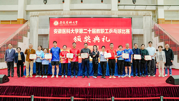 后勤保障部王珏、巢湖临床医学院(附属巢湖医院)刘众、离退休人员工作处夏毓敏获男子单打前三名;安徽省公共卫生临床中心陈妍妍、附属阜阳医院赵文、第二临床医学院(第二附属医院)叶惠娟获女子单打前三名;后勤保障部廖舟舟、程春丰,第一临床医学院(第一附属医院)高长林、陈象逊,医学人文学院马志军、陈桂平获男子双打前三名;第一临床医学院(第一附属医院)秦维玲、朱颖,机关党委李鸣、江洪燕,口腔医学院(附属口腔医院)赵春晖、罗菲菲获女子双打前三名;医学人文学院陈凯华、袁玎,机关党委周放、王润玲,第二临床医学院(第二附属医院)鞠康康、何水红获混合双打前三名。