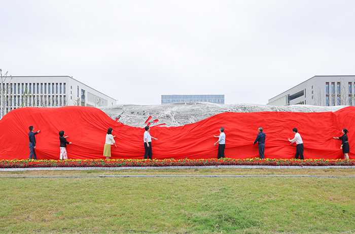 在全体与会人员的共同见证下,王琦、翁建平,以及省教育厅副厅长刘业勋,省卫生健康委副主任马勇,必欧瀚生物技术有限公司总经理、校友会副会长刘峰,香港大学InnoHK干细胞转化研究中心高级科学总监刘芳,合肥市第四人民医院党委书记牛伶,广德市人民政府副市长江晓华等1995届校友,共同为校训石揭幕。